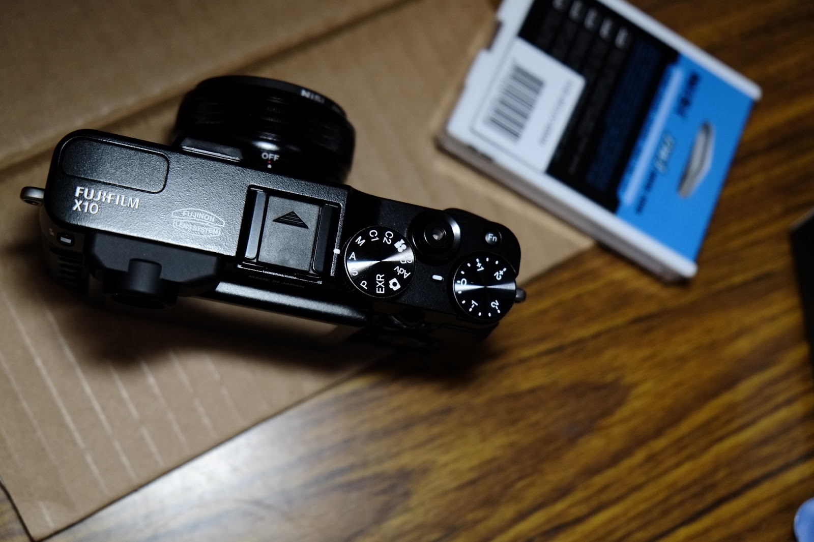 機身上方配置,寫著大大的FUJIFILM X10,快門紐尚未裝上紅色增高紐