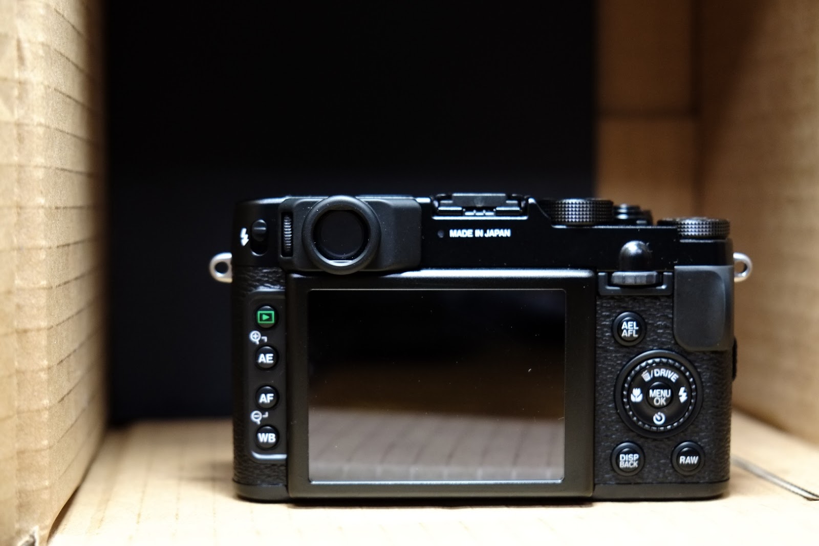 機身背後按鈕配置,以及2.8吋螢幕,伴隨著觀景窗,最重要是那一行字 MADE IN JAPAN