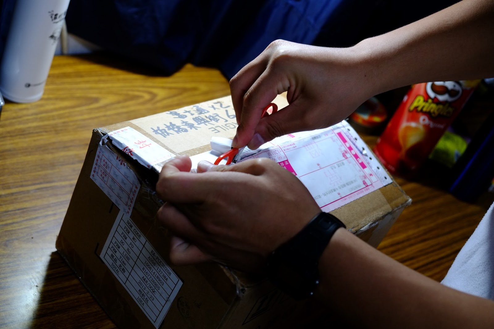 懷著猜禮物的心情,手裡拿著我上成功嶺時所購置針線盒裡的小剪刀來拆開這禮物。